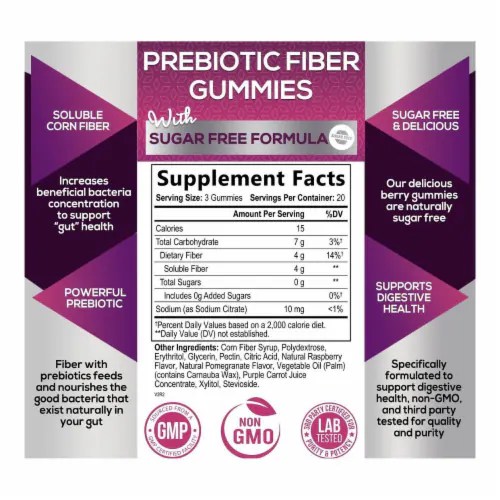 Benefiber Prebiotic Fiber Supplement Gummies with Probiotics Digestive Fiber Gummies Nutrition Facts The macronutrient breakdown is 100% carbs, 0% fat, and 0%. Fiber gummies are dietary supplements designed to provide a convenient source of fiber in a chewable, gummy form. There are 25 calories in 3 gummies of metamucil fiber gummies. 0% saturated fat 0g trans fat 0g. The macronutrient breakdown is 100% carbs, 0% fat, and 0%. The macronutrient breakdown is. Fiber Gummies Nutrition Facts.