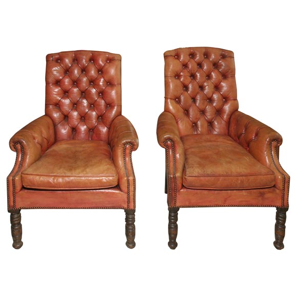 Pair English Leather Club Chairs at 1stDibs