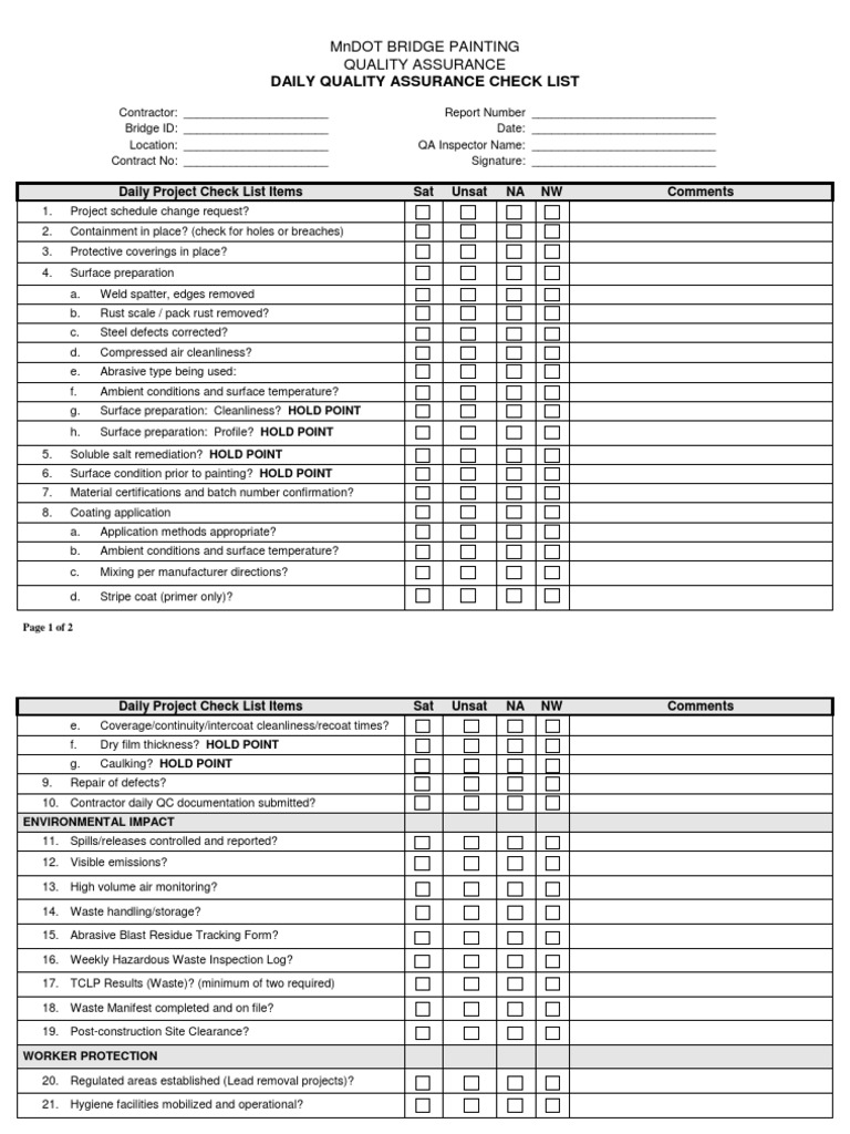 Painting Checklist Daily Qa