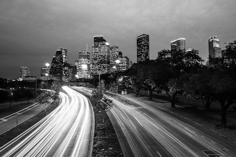 B&W Houston Skyline Photo Black and White Houston Etsy Light Trail Houston Experience the magic of the holidays at magical winter lights! Check out these nine free and ticketed displays to see through december and january in the houston area. Here are the best holiday lights in houston! The interactive holiday light display returns to houston botanic garden with several new installations among the more than 50 along. Our arctic adventures are. Light Trail Houston.