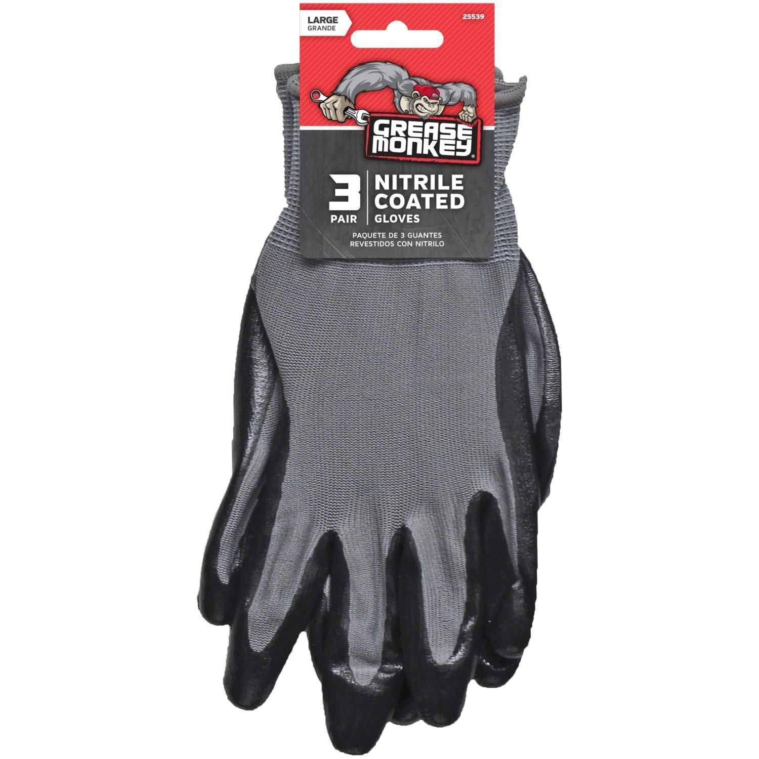 Grease Monkey Nitrile Dipped Large Gloves 3 Pack