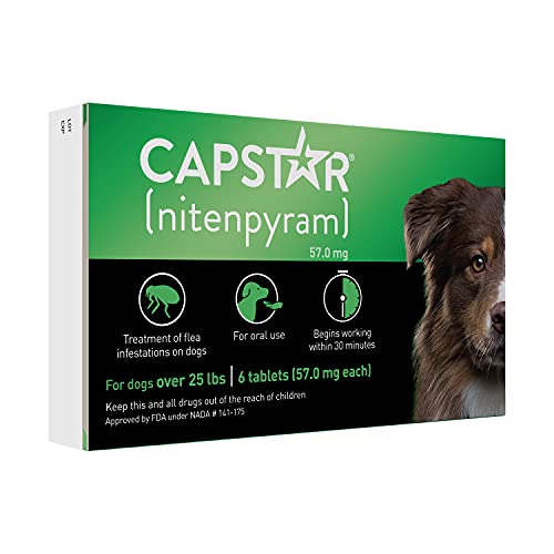 4 Pack Capstar Green for Dogs Over 25 LBS 24 Tablets Capstar For Medium Dogs Capstar flea tablets for dogs and cats rapidly kills adult fleas on dogs and cats. 5/5 (312k) Can also be used to treat flea allergy dermatitis. Capstar starts killing fleas within 15 minutes and provides 100% efficacy over 24 hours. Capstar flea treatment tablets for dogs & cats offers the fastest removal of adult fleas from your pet. Capstar. Capstar For Medium Dogs.
