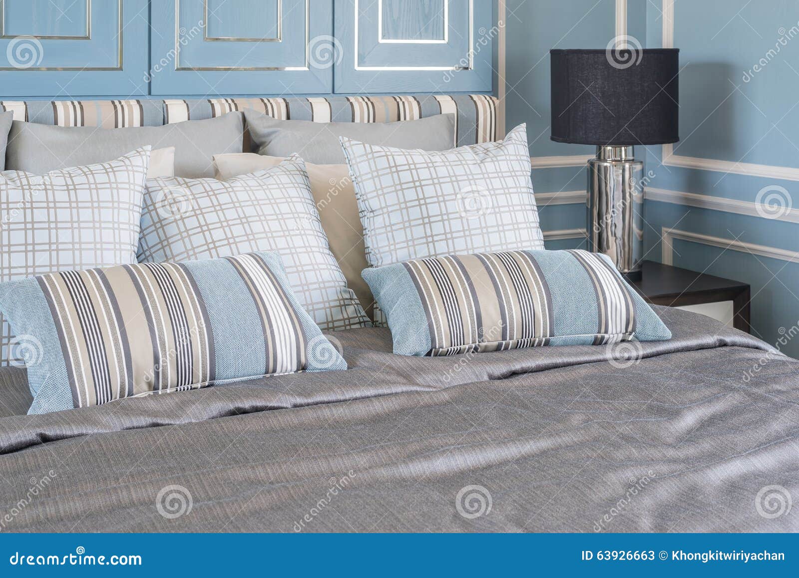 Blue Pillows on Luxury Bed in Blue Bedroom Stock Image Image of