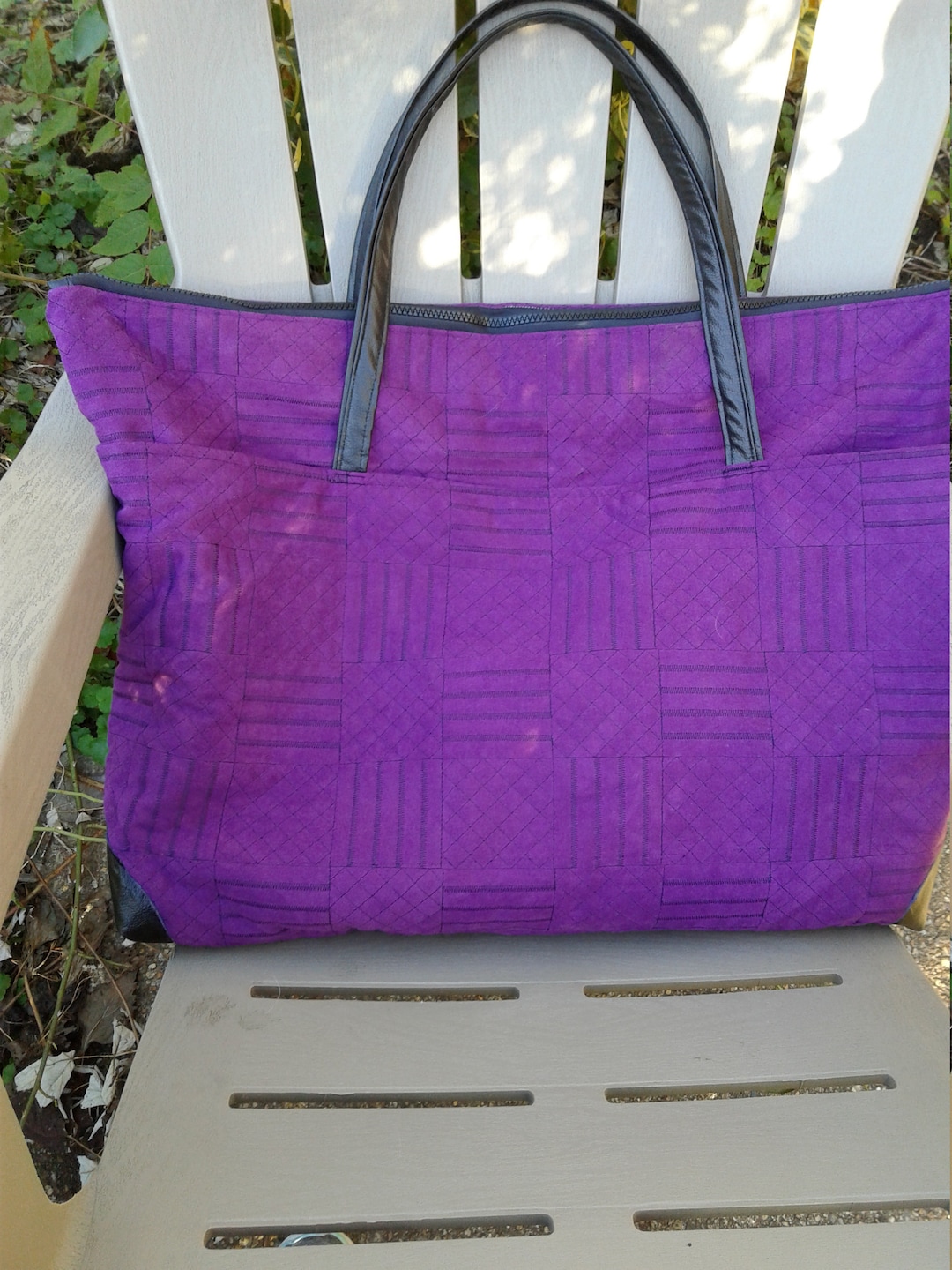 Purple Tote Bag, Travel Tote, Magenta Weekender Tote Bag, Quilted Tote