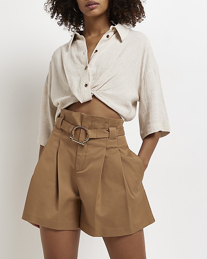 Brown belted paper bag shorts River Island