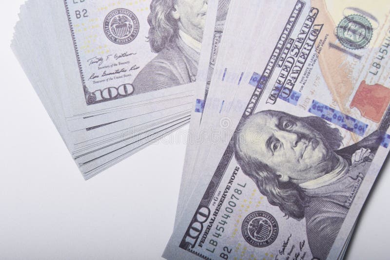 100 Dollars Banknotes Benjamin Franklin, Money Finance Isolated Stock