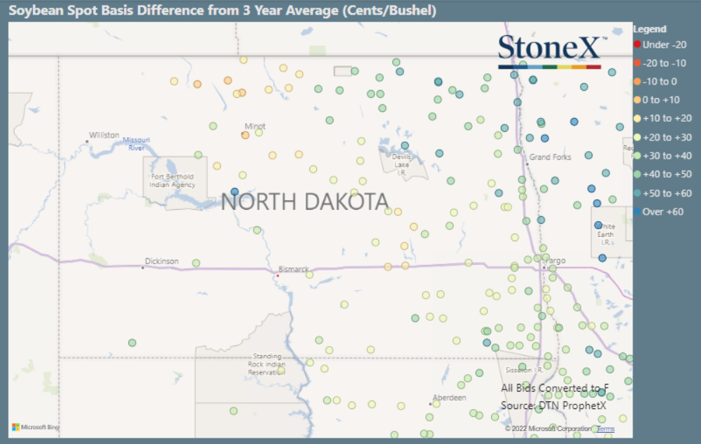 North Dakota Soybean Basis Maps