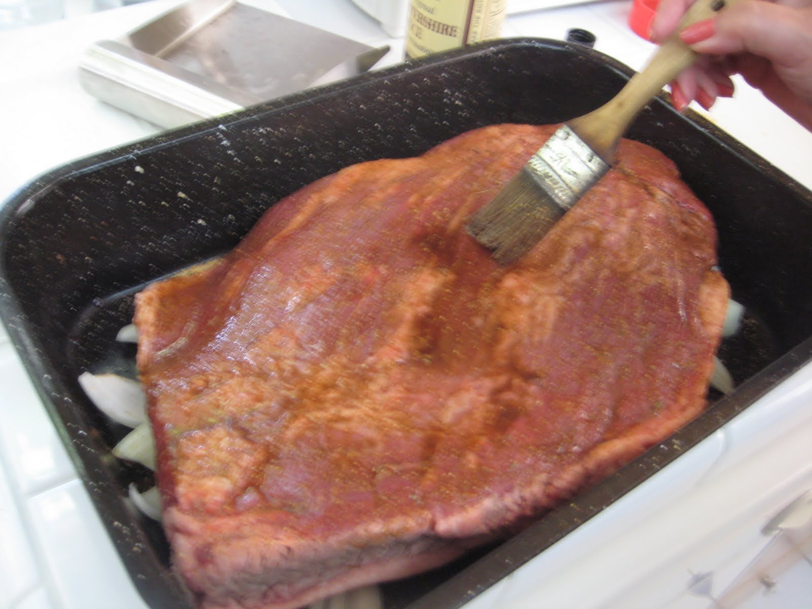 Homemade Brisket BBQ Sauce Brisket, Food, Bbq Worcestershire Sauce Brisket Place your brisket fat side down in a 13 x 9.5 inch baking dish. Place the brisket in a large roasting pan and trim the fat if it is thick, but leave at least a 1/4 layer. In a small bowl, mix the worcestershire sauce, soy sauce, onion salt,. Moisten the brisket with all of the worcestershire sauce, then sprinkle. Worcestershire Sauce Brisket.
