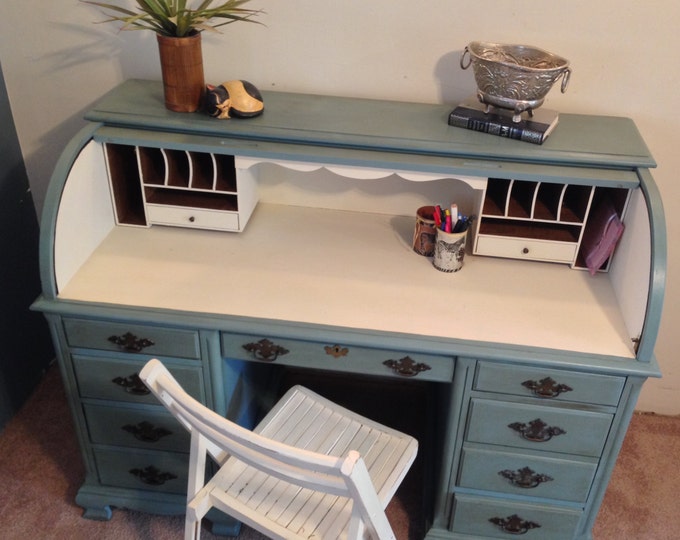 Vintage Roll Top Desk Home Office Desk Painted Roll Top Desk Etsy