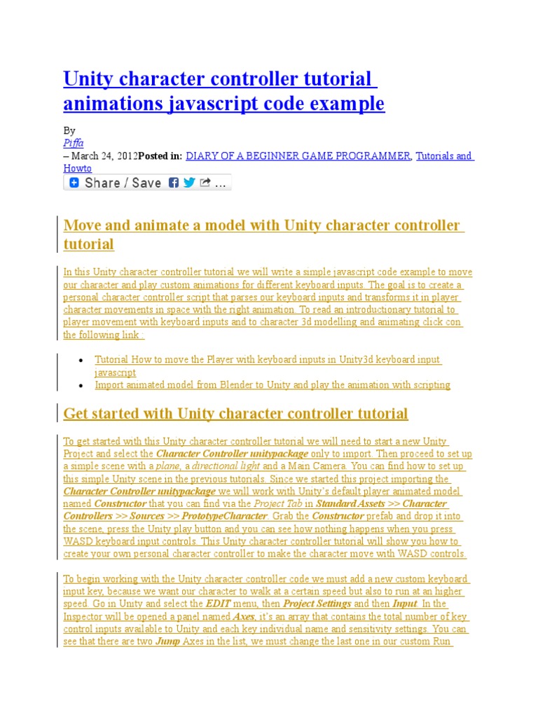 Unity character controller tutorial animations javascript code example Unity Character Controller Code Consult the tutorial section for a guided tutorial on how to customize a character controller in various ways. A charactercontroller allows you to easily do movement constrained by collisions without having to deal with a rigidbody. The character controller can affect objects using physics if you write your own scripts a piece of code that allows you to create your. Unity Character Controller Code.