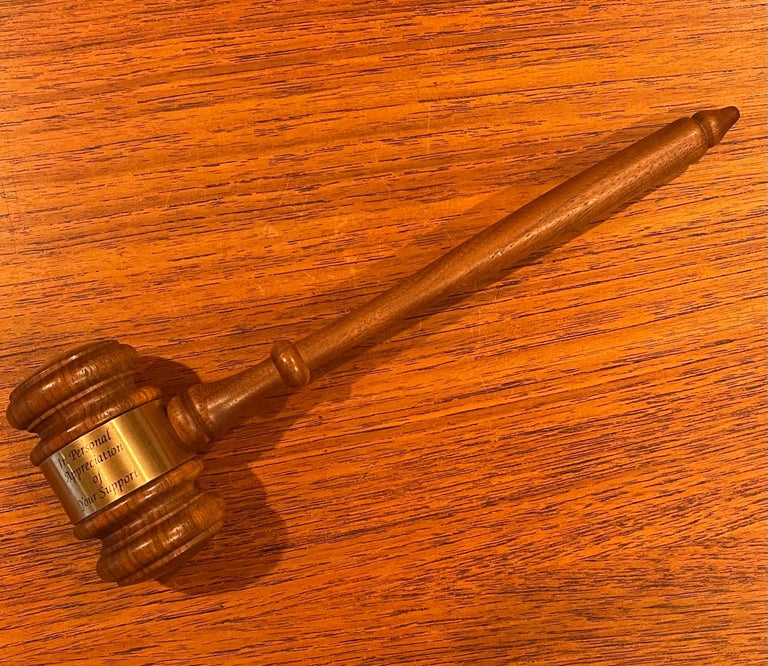 Judge's Walnut Gavel / Mallet with Brass Appreciation Plate from Newt