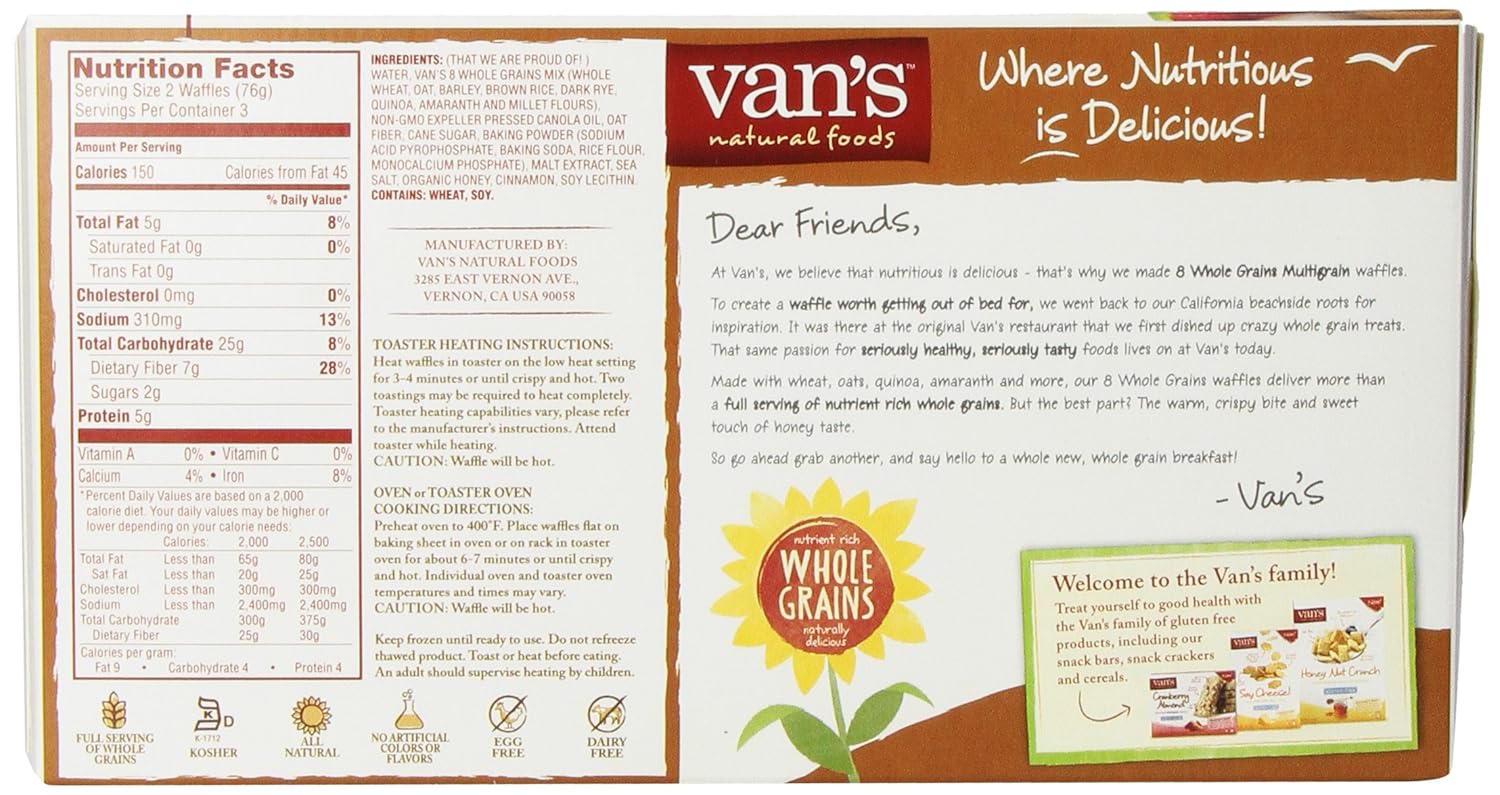 Van's Natural Foods Lite Waffles, 97 Fat Free Calories, Nutrition Wheat Waffles Nutrition Facts 1 serving of whole wheat waffle (market basket) contains 60 calories. 2 each of whole wheat waffles (roundy's) contains 190 calories. 2,000 calories a day is used for. 24 rows *the % daily value (dv) tells you how much a nutrient in a serving of food contributes to a daily diet. 31% fat, 60% carbs, 9% protein. 2 waffles of. Wheat Waffles Nutrition Facts.