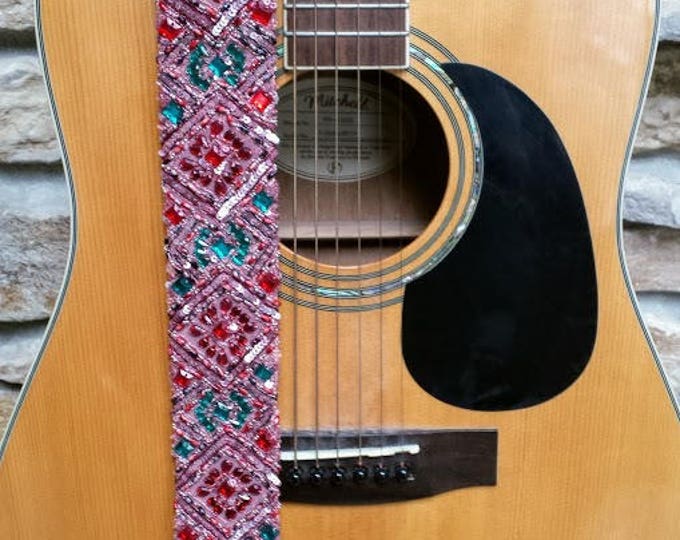 Pink Diamond Beaded Guitar Strap Statement Guitar Strap Unique Custom