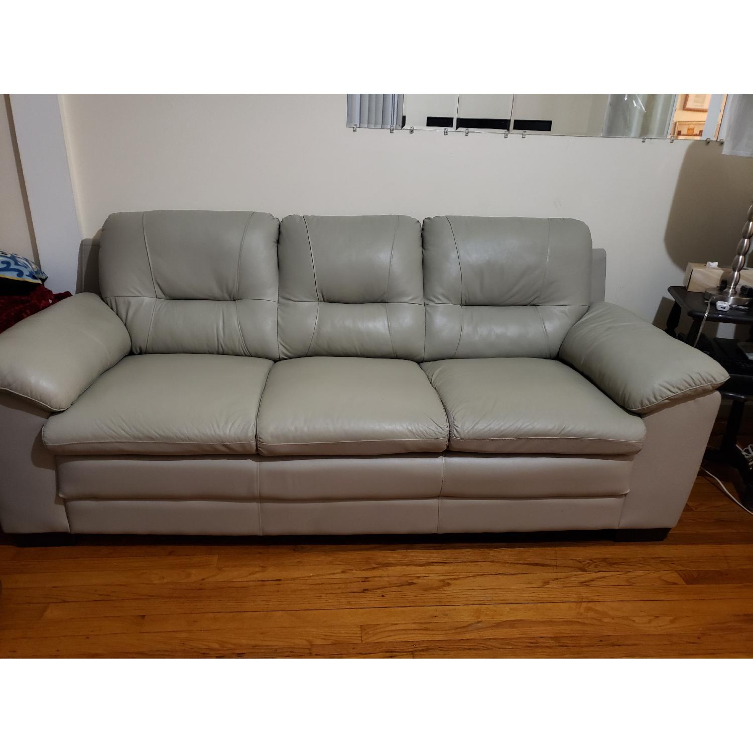 New Spec Inc Light Grey Leather Sofa AptDeco