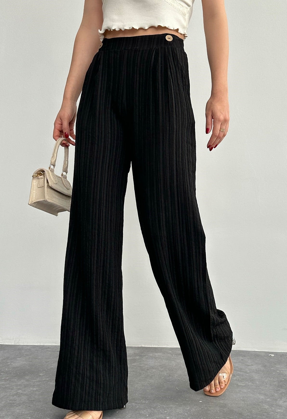 Crinkled Linen Black Pants BOHEME