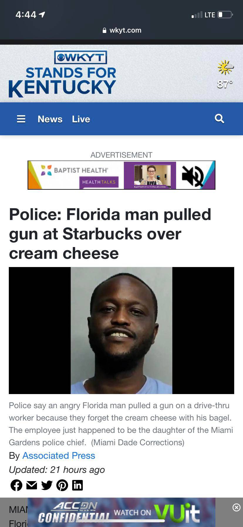 “Florida man pulled gun at Starbucks over cream cheese” Scrolller
