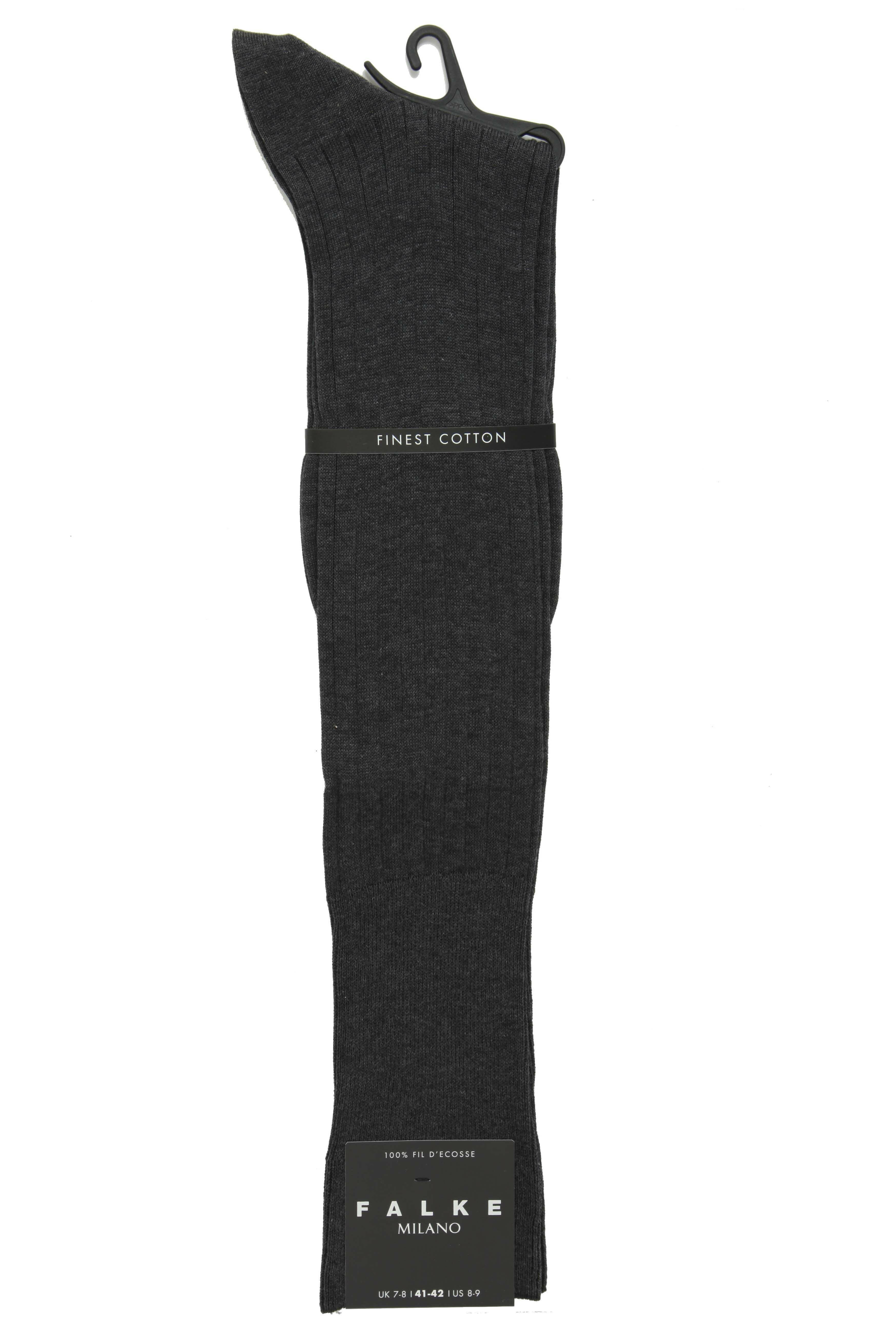 Mens 1 Pair Falke Milano 100 Cotton Knee High Socks In 4 Colours Light Grey Melange 4748