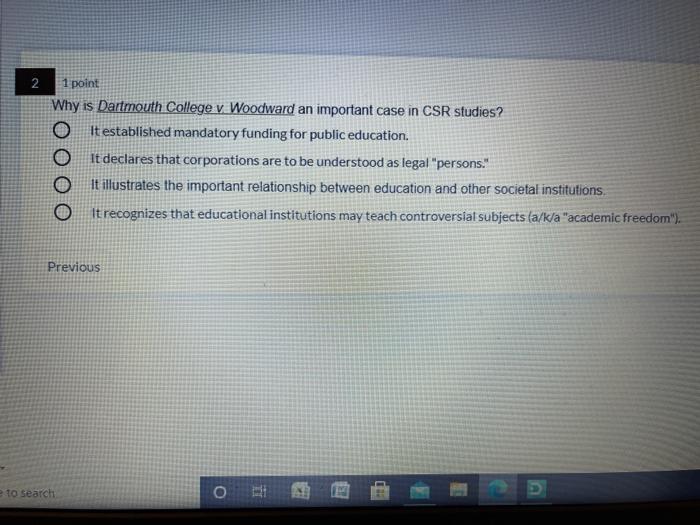 Solved 2 1 point Why is Dartmouth College v Woodward an