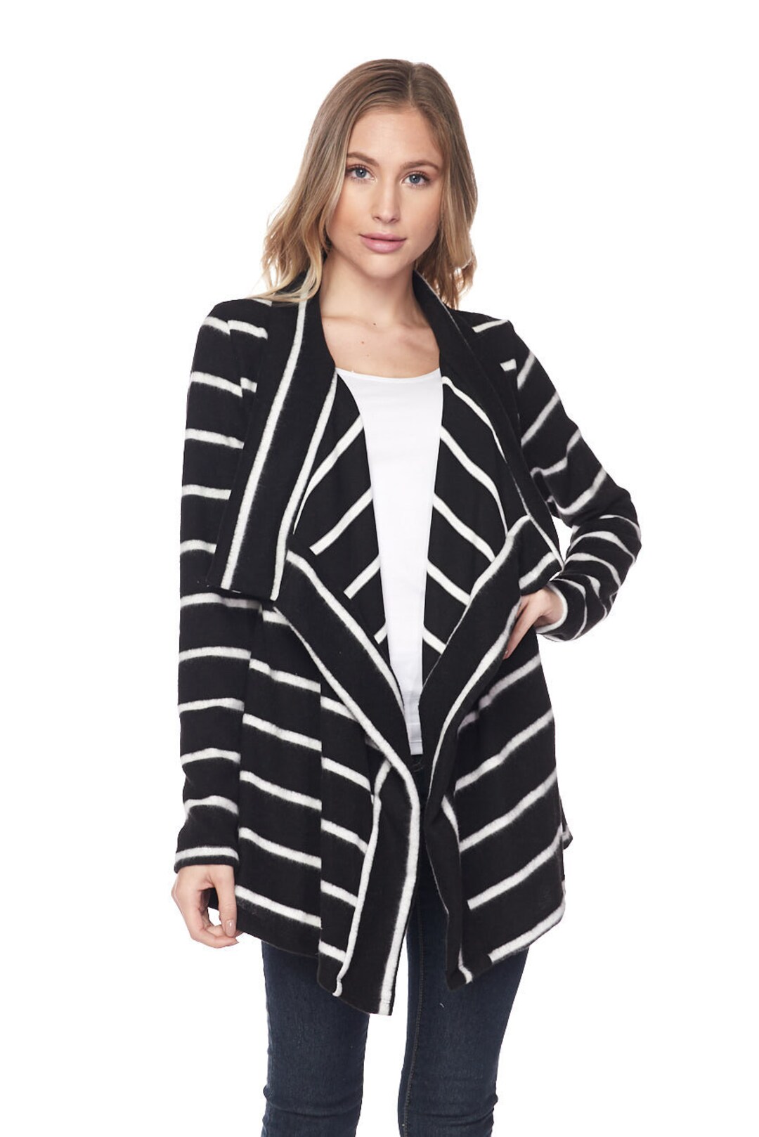 vertical striped black and white long open front cardigan jacket, wear What Goes With A Black And White Striped Cardigan here in this look book i have 15 ways to style black and white striped clothes that will leave you itching to update your wardrobe. if you have a striped cardigan, stick to neutral for the rest of the outfit to really let the striped cardigan shine. 10 ways to wear a striped cardigan. Black and white. What Goes With A Black And White Striped Cardigan.