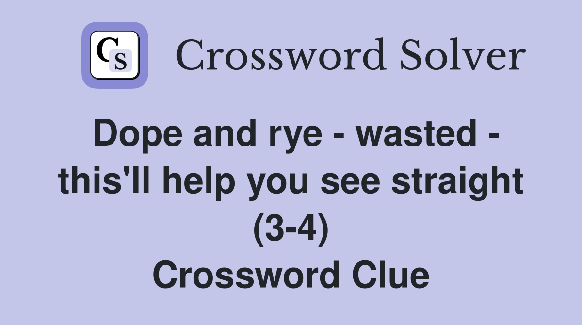Dope and rye wasted this'll help you see straight (34) Crossword