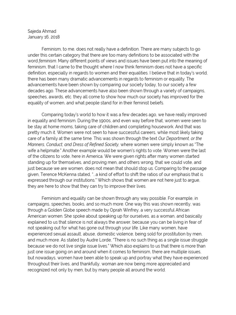 Feminismessay 01 amended Kumarie Fernando 2019 Q5) ‘Feminist legal theories do not assist our Best Feminist Essays Taking the time to assess generational trauma and unhealthy relational dynamics, [working toward] receiving healthy love between ourselves, our communities, and others is crucial to promoting a. 10 best essay collections written by women to be inspired by. Covering perspectives on everything from sexual politics. Notes from the women that a movement forgot by mikki kendall. The feminist women’s essays. Best Feminist Essays.