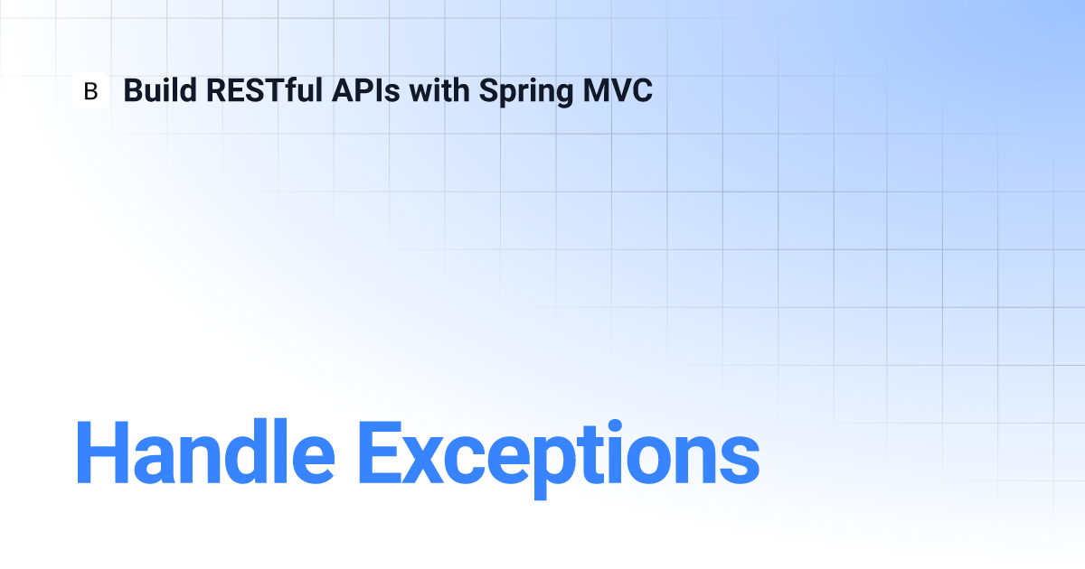 Handle Exceptions Build RESTful APIs with Spring MVC How To Handle Exception In Spring Boot Rest Api This annotation can be used to provide customized. Spring provides the @exceptionhandlerannotation to handle exceptions in specific handler classes or handler methods. In this tutorial, we will learn how to handle exceptions for restful web services developed using spring boot. Spring configuration will detect this annotation and. By using @exceptionhandler and @controlleradvice, we’ll be able to define a central point. How To Handle Exception In Spring Boot Rest Api.