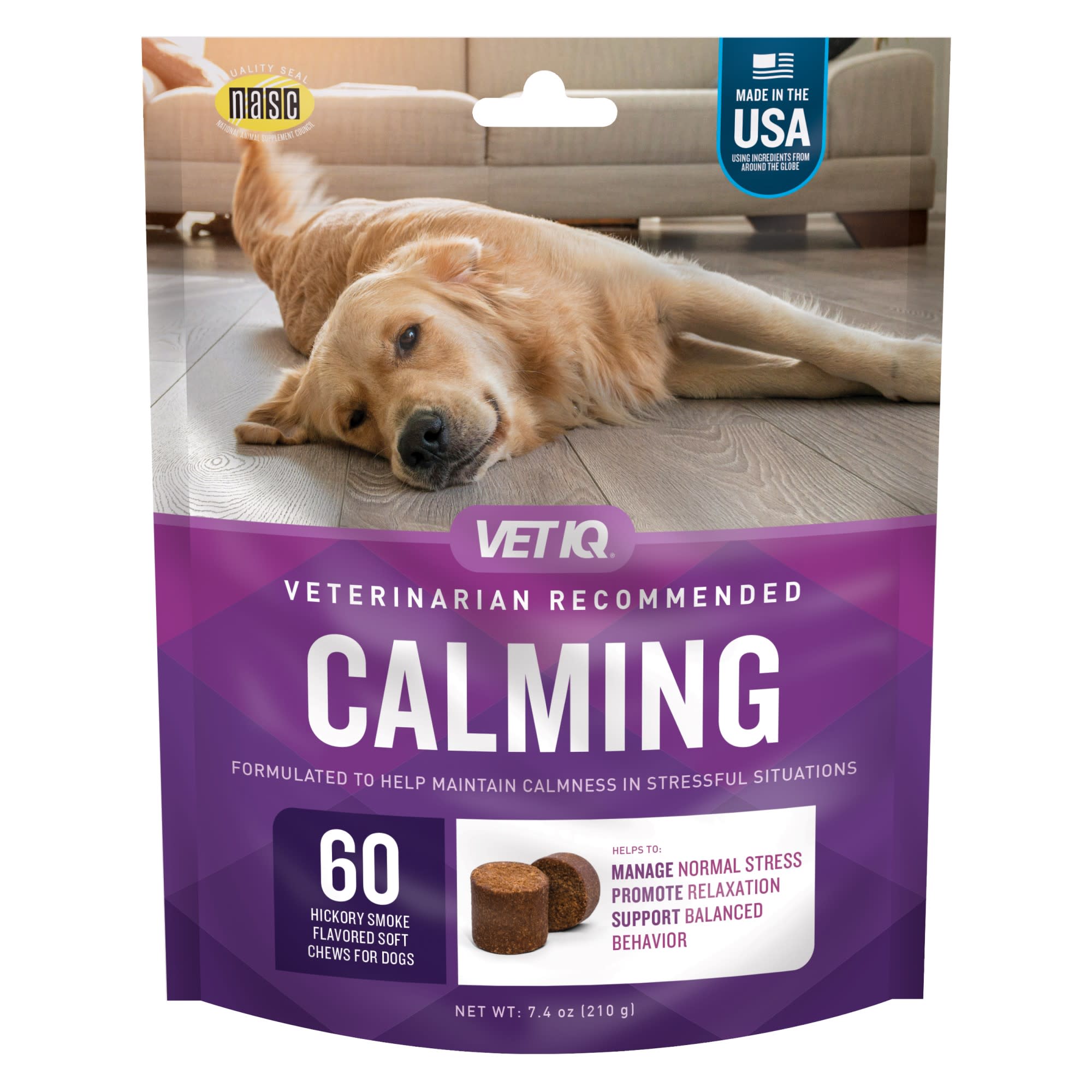 VetIQ Calming Soft Chews for Dogs, Hickory Smoke, 60 Count