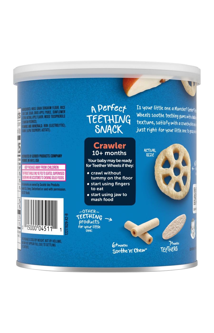 Gerber Snacks for Baby Teether Wheels, Apple Harvest, 1.48 oz Canister Gerber Teether Snacks Shop all kinds of baby snacks. Your little one will love our teething biscuits and teething cookies. Gerber teethers are gluten free and unsalted, and they have no artificial flavors, colors or sweeteners, and they are. These easily dissolving snacks contain 4 grams of whole. A perfect first snack for baby's teething comfort that are easy to hold. 12 ct. Gerber Teether Snacks.