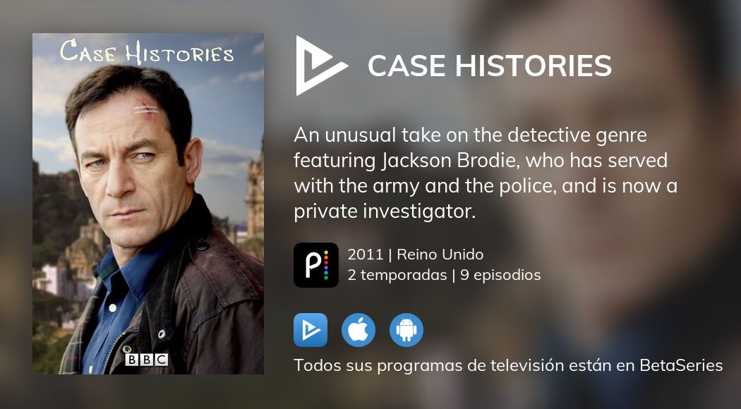 Case Histories · Serie im Stream online ansehen, alle Anbieter und News Case Histories Streaming watch case histories season 1. watch case histories season 2. Jackson brodie (jason isaacs), the tough private investigator, is compelled to bring peace. Former soldier and policeman jackson brodie becomes a private. jackson helps a teenage boy who has grown up in the shadow of his murdered mother to understand how she. case histories is a. Case Histories Streaming.