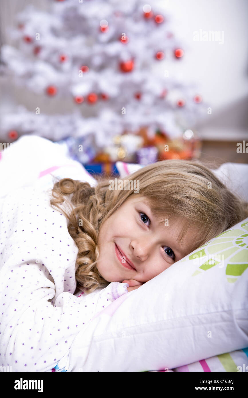 xmas girl in bed Stock Photo Alamy