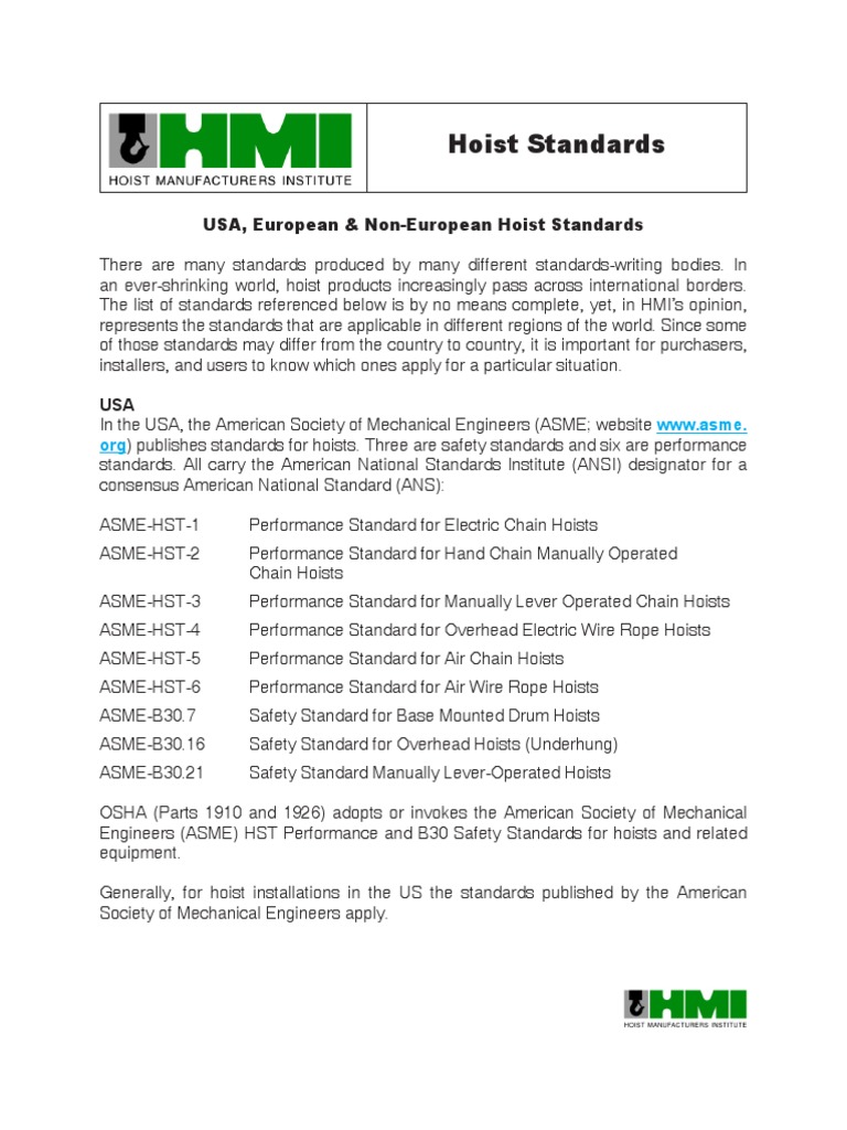 Hoist Standards PDF Crane (Machine) Standardization