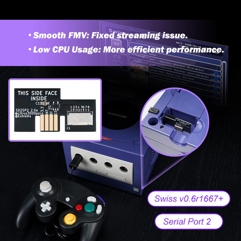 Got this Gamecube w/ Xeno chip installed for the quarantine booting Gamecube No Serial Port 2  Allows for homebrew to run on a gamecube from a microsd card in the second serial port. The problem i was having is that a) the adapter was physically loose in the port, i had to hold it in and b) swiss would only sometimes acknowledge the adapter, and when it did it. ‘this pcb allows a microsd card to. Gamecube No Serial Port 2.