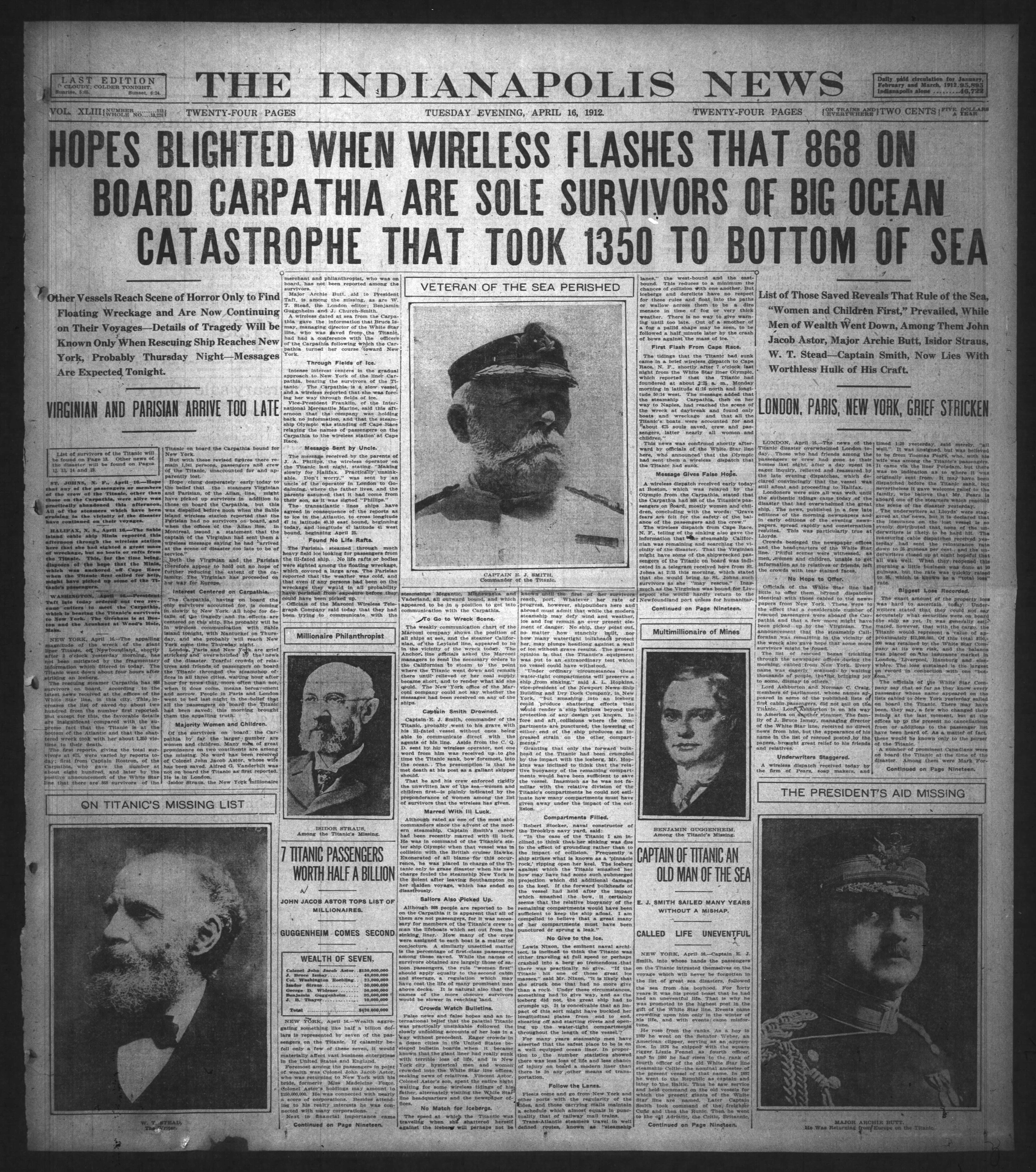 Titanic sinking How Indianapolis newspapers covered the tragedy
