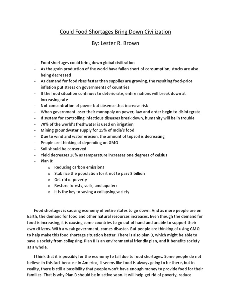 could food shortages bring down civilization Famine Foods