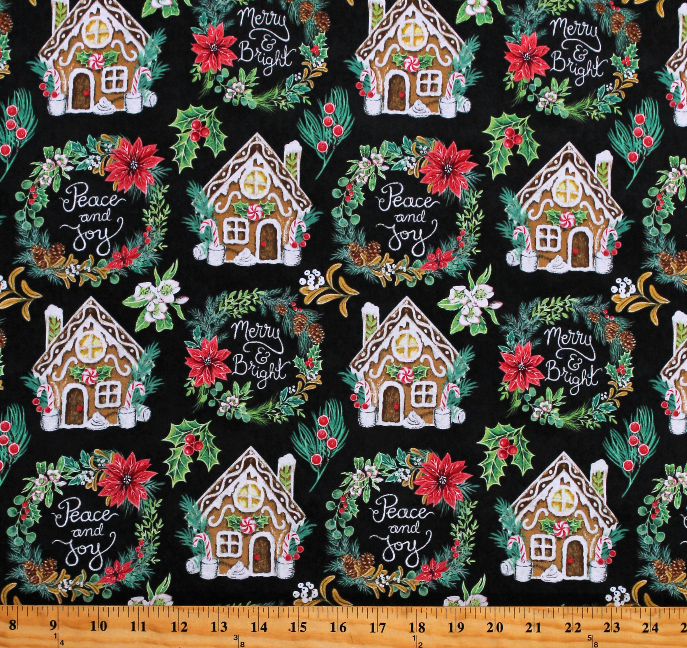 Cotton Gingerbread Houses Merry & Bright Christmas Holidays Mistletoe