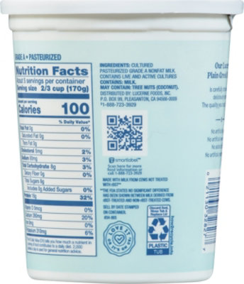 Lucerne Dairy Farms Plain Greek Nonfat Yogurt (32 oz) Instacart Lucerne Plain Yogurt Nutrition Facts % daily value* total fat 0g 0% saturated fat 0g 0% trans fat. Oz (170 g) amount per serving. 1 cup of plain yogurt (lucerne) contains 180 calories. Find out the calories, fat, protein, carbs and sugar content of lucerne plain nonfat yogurt. Oz (170 g) amount per serving. There are 190 calories in 1 cup (227 g) of lucerne. Lucerne Plain Yogurt Nutrition Facts.