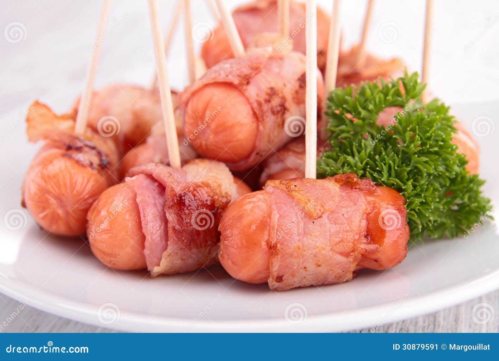 Sausage wrapped in bacon stock image. Image of cooked 30879591