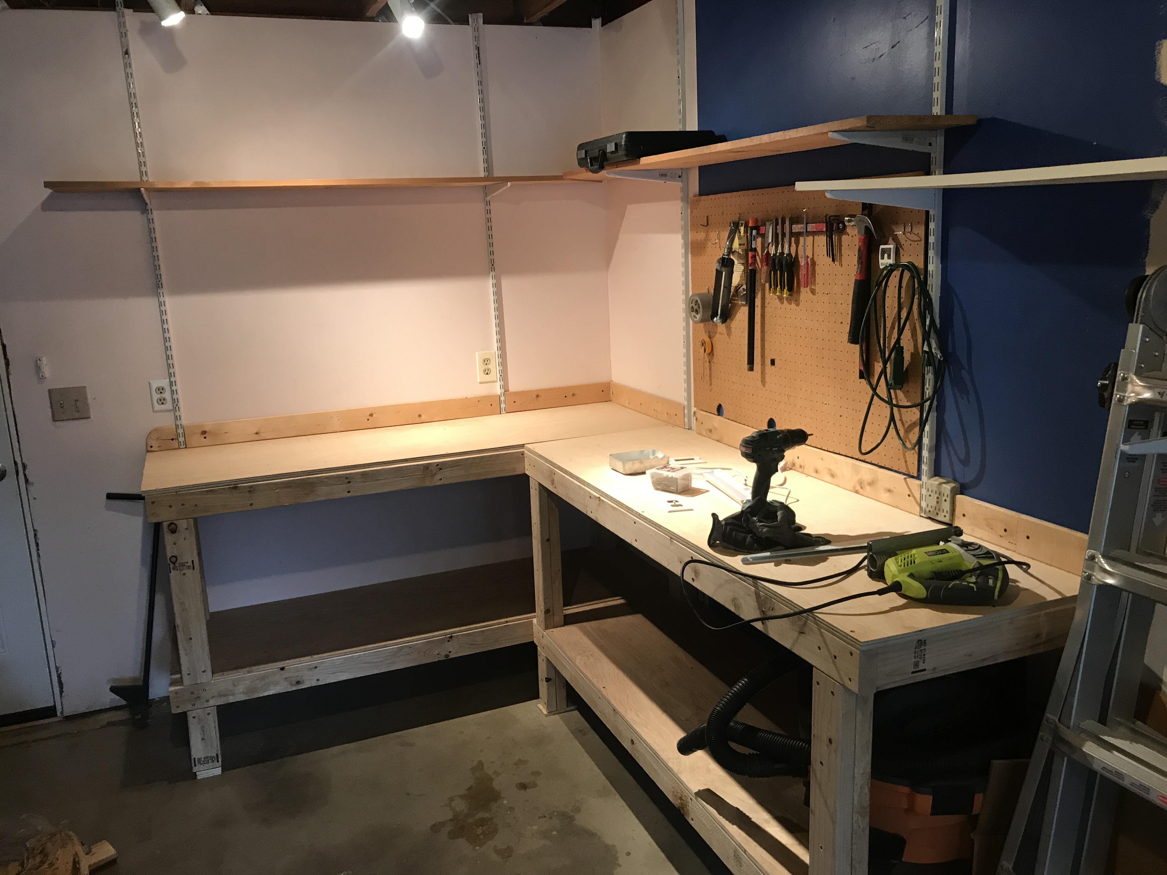 Corner Garage Workbench Plans Cheap and easy garage workbench A corner workbench allows you to still have a large workspace, but it's much easier to maneuver and access everything on it than it is on the traditional type. With these diy corner workbench plans, you'll have everything you need to build one for yourself in no time at all. Every home workshop (even if. Corner Garage Workbench Plans.