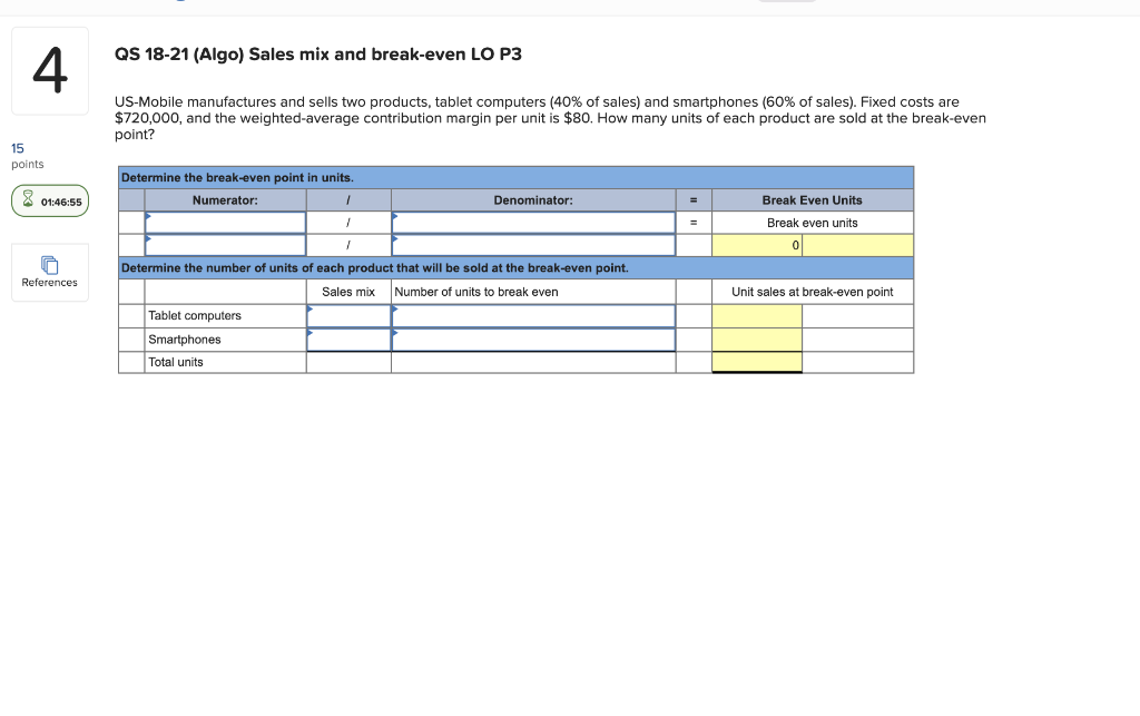 Solved QS 1821 (Algo) Sales mix and breakeven LO P3 4