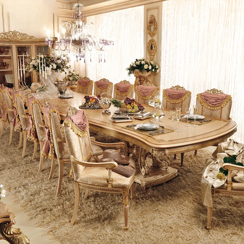 Luxury villa dining room furniture, large carved solid wood dining