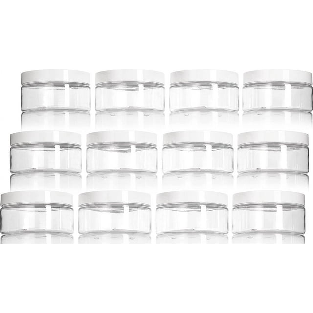 8 oz Clear PET Plastic Low Profile Jar with White Smooth Lids (12 Pack