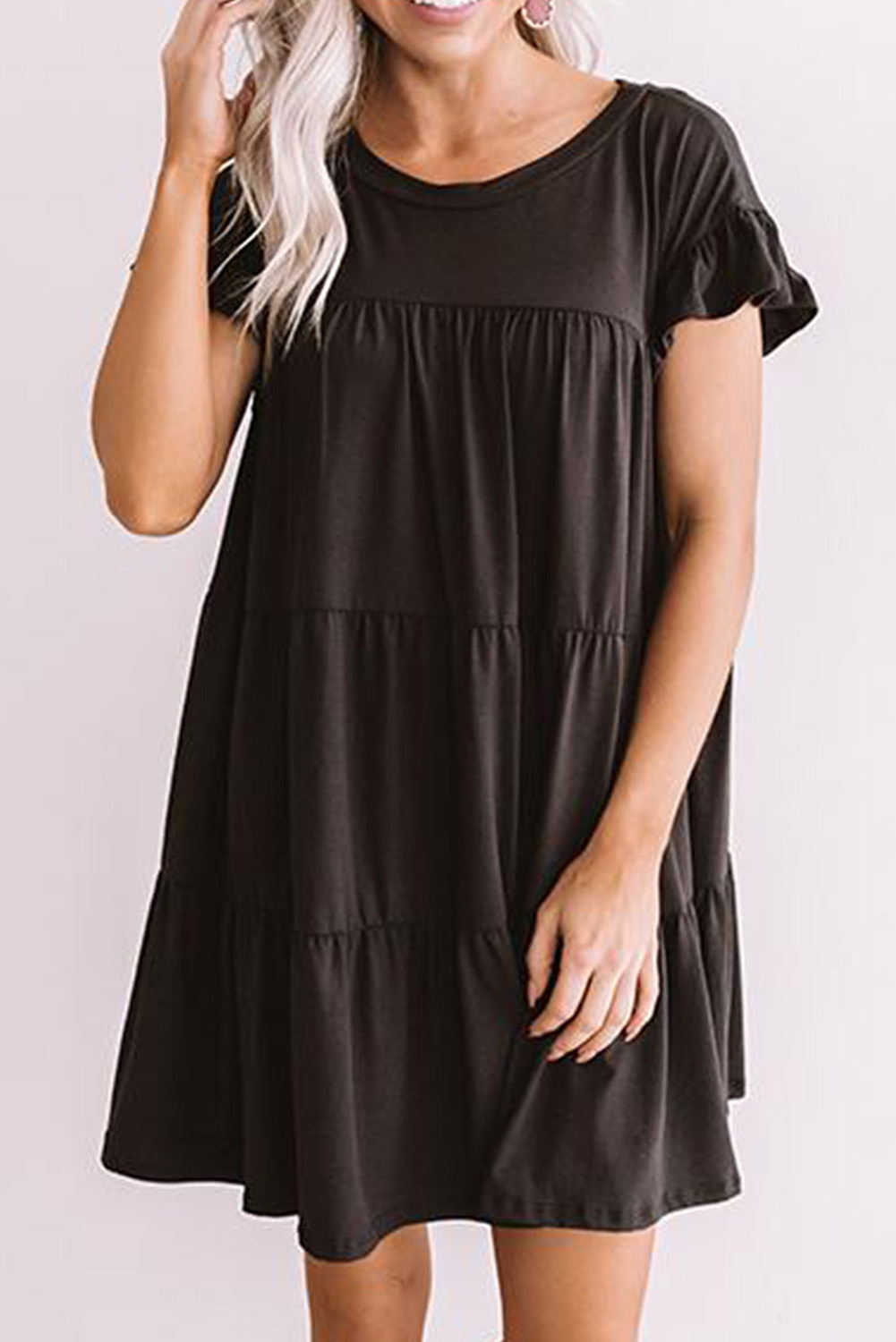 Wholesale Other Category, Cheap Black Ruffle Short Sleeve Babydoll Mini