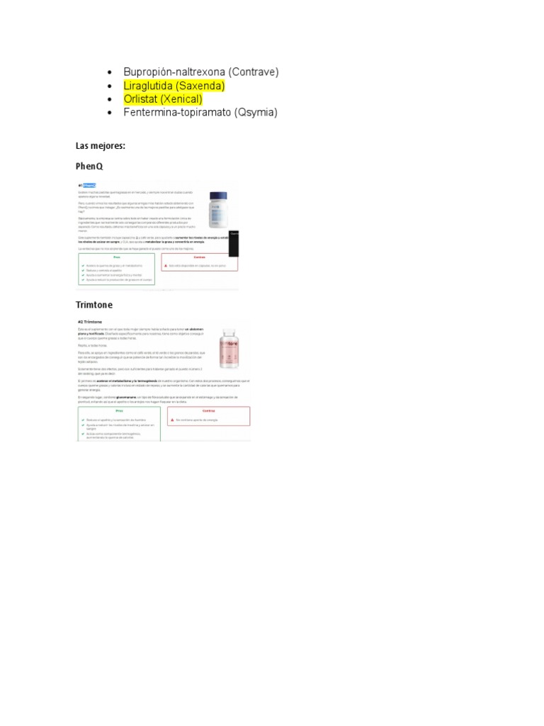 BupropiónNaltrexona (Contrave) Liraglutida (Saxenda) Orlistat (Xenical