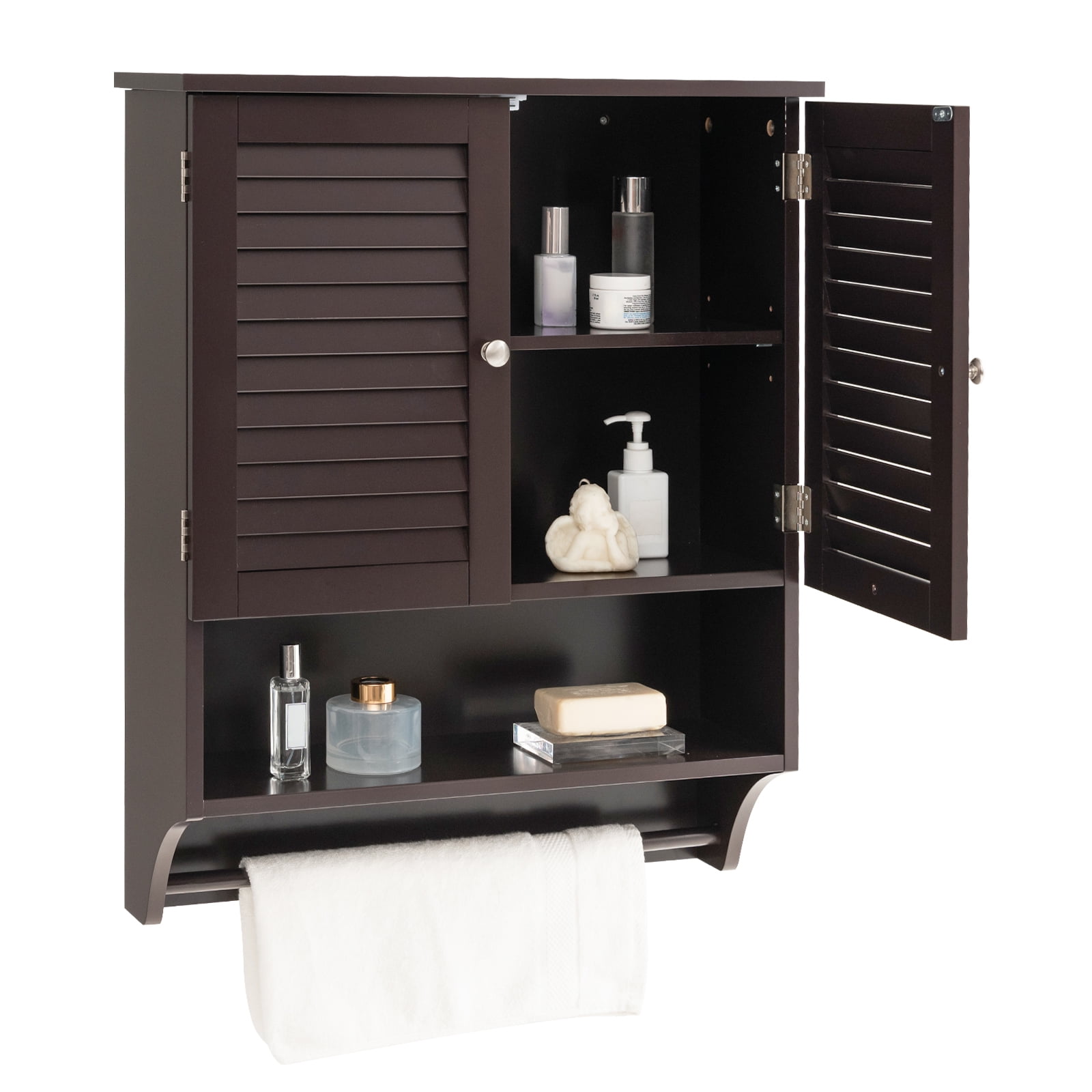 4,5/5 (2.291) Tidy up your bathroom with our wall mounted bathroom cabinet! Shop costway bathroom wall mounted medicine cabinet with louvered doors & towel bar. Upgrade your bathroom with the stylish black costway wall mounted medicine cabinet with louvered doors & towel bar. This bathroom wall mounted cabinet includes various storage areas, which. The shelves inside this bathroom cabinet can be adjusted. Adjustable shelves & louvered door: