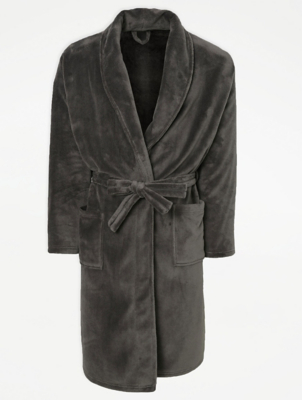 Grey Fleece Dressing Gown Men at ASDA