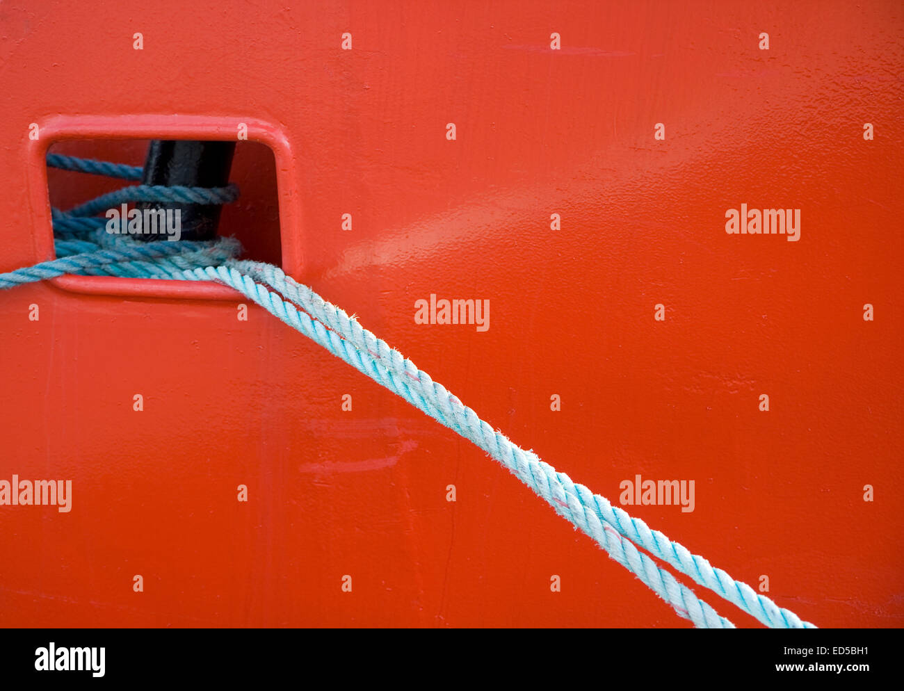 Mooring Lines on Red Vessel in the small harbour Snaptun, Denmark Stock