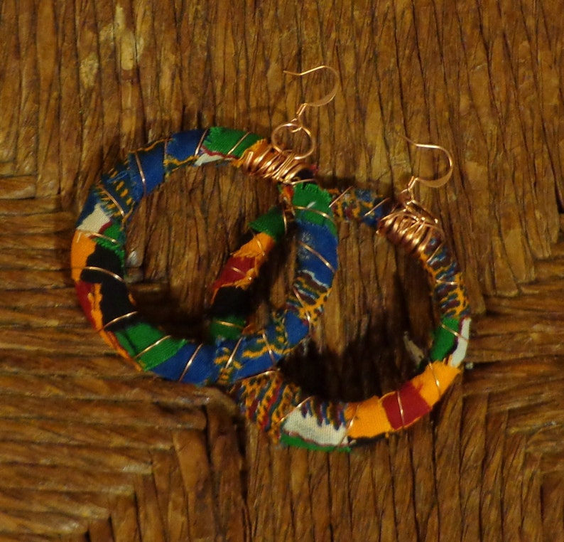 Kente Hoop Earrings w/ Copper Wire Fabric Earrings Ethnic Etsy