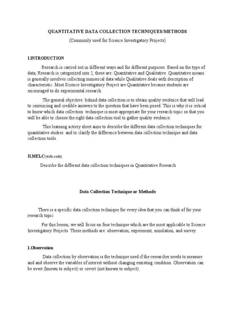 Phase Two of Data Collection Phase Two of Data Collection Quantitative Data Collection Techniques Reflective Essay There are two methods of collecting data [2]: After reading this chapter, you should be able to. List the six major methods of data collection. Surveys, observations, archival research, and secondary data collection can be quantitative or qualitative methods. This procedure is based on taking tools to collect structured data appropriate for the expertise of the categories of predefined. It. Quantitative Data Collection Techniques Reflective Essay.