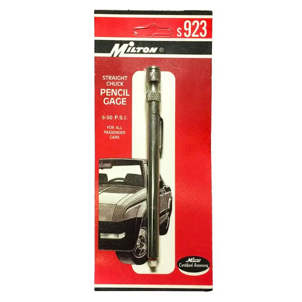 Milton S923 Tire Pencil Gauge Straight Chuck (550 PSI) All Tire Supply Milton Single Chuck Head Pencil Tire Pressure Gauge This single head pencil tire pressure gauge comes with both a deflator. They are made from durable plated. Offers a range up to 50 psi or 350. Pencil gauges made with machined parts, unlike our competition! Introducing the pinnacle of precision and. Milton Single Chuck Head Pencil Tire Pressure Gauge.