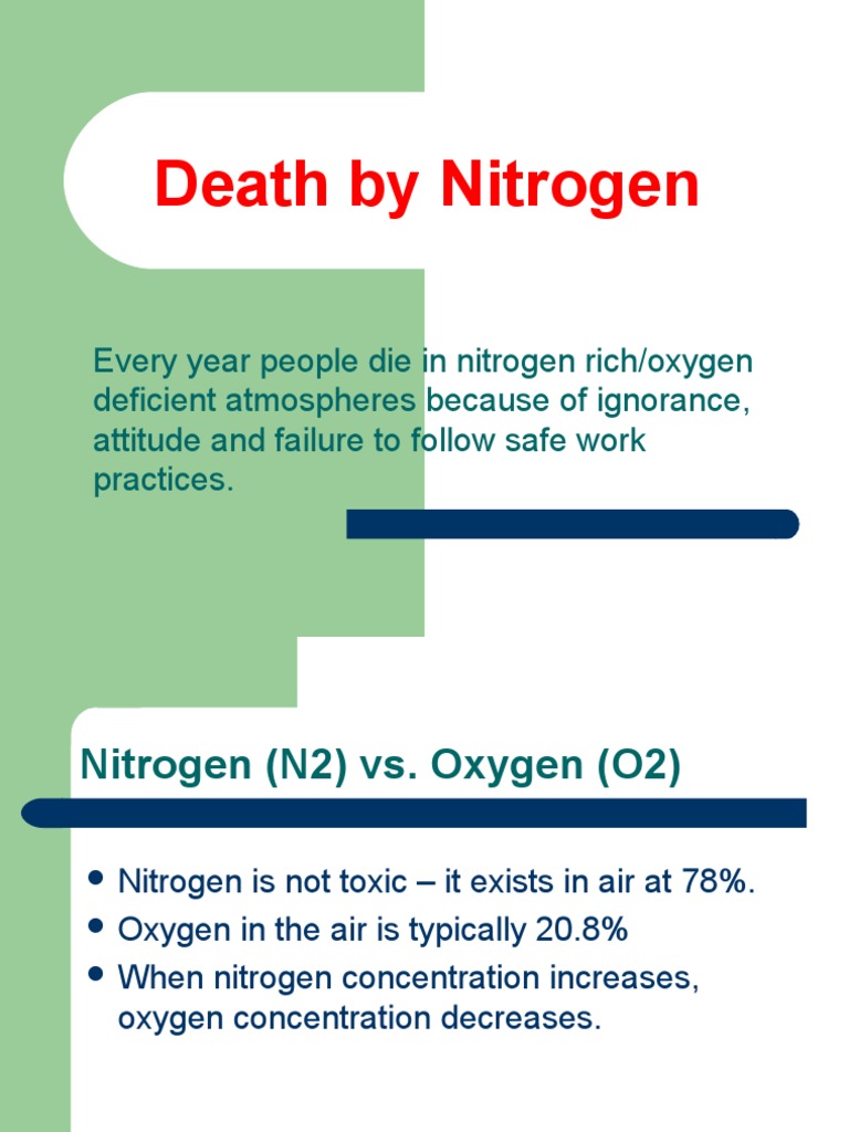 Nitrogen.ppt Breathing Hypoxia (Medical) Is Nitrogen Gas Harmful To Humans — scientists have long cited reactive nitrogen for creating harmful algal blooms, coastal dead zones and ozone. how does nitrogen pollution harm the environment and human health? Nitrogen pollution is disrupting life on land and underwater. Nitrous oxide is 300 times more potent than. When the availability of nitrogen compounds exceeds consumption by plants, excess nitrogen gets into. Is Nitrogen Gas Harmful To Humans.